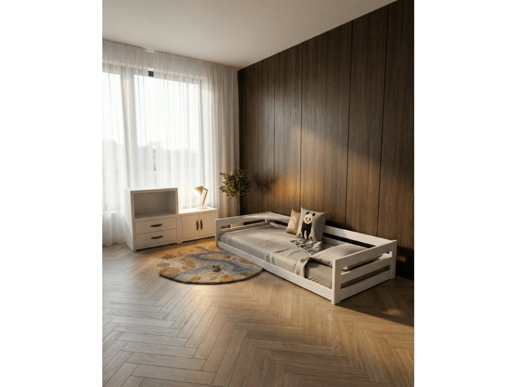 Upozornění: Montessori postel se prodává bez zábran a dalšího příslušenství, jako je stříška a potah.